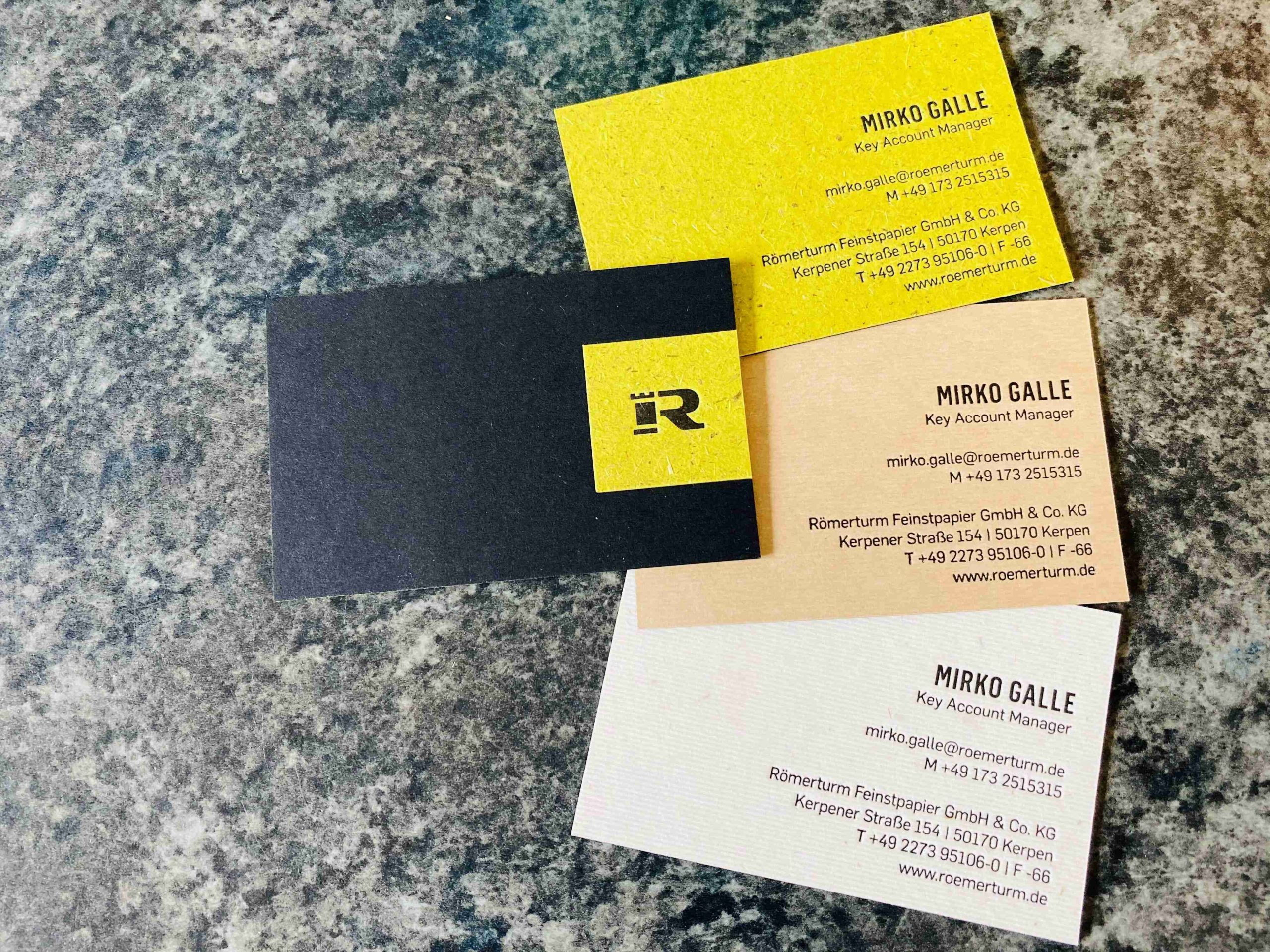 wir haben kürzlich ganz neue super-schöne Visitenkarten erhalten und das gleich in dreifacher Ausführung mit hochwertigsten Umweltkartons von Römerturm.