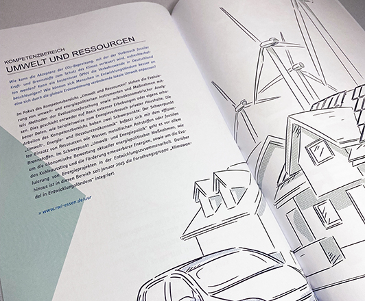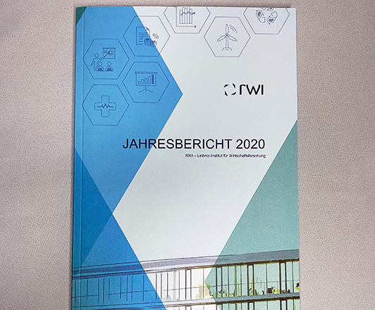 Der „RWI Jahresbericht“ gibt einen kompakten Überblick über die Aktivitäten des RWI – Leibniz-Institut für Wirtschaftsforschung im jeweiligen Berichtsjahr. Magazin-Elemente (Interviews, Fotocollagen, Infografiken) lockern den Text-Teil auf und steigern die Lesefreundlichkeit.
