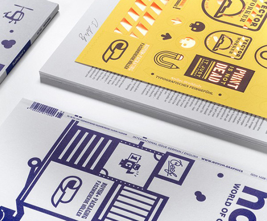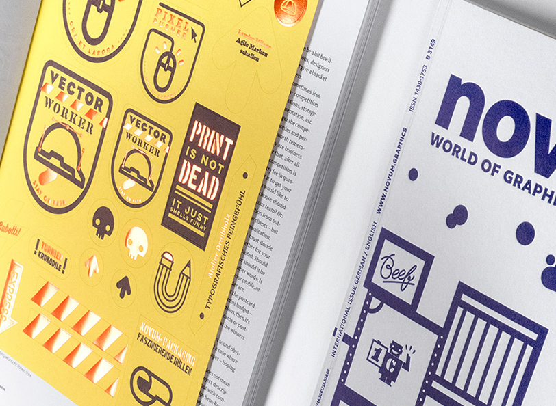 Die Ausgabe 05.19 der novum lädt mit einem interaktivem Cover dazu ein, feinsten Letterpress zu spüren und es mit veredelten Etiketten zu vervollständigen. Das charmante Artwork stammt von Dirk Uhlenbrock (erste liga), das von Letterjazz nach allen Regeln der Letterpress-Kunst auf drei verschiedenen Farben von Colorplan (Römerturm) umgesetzt wurde. Auf der ersten Inhaltsseite des Heftes finden sich die mit Heißfolie (Kurz) veredelten Etiketten der brandneuen Sorte Colorplan Labels. Das perfekte Entrée für das Schwerpunktthema »Packaging«, das Projekte aus aller Welt präsentiert, die in ihren Märkten für Aufmerksamkeit sorgten.